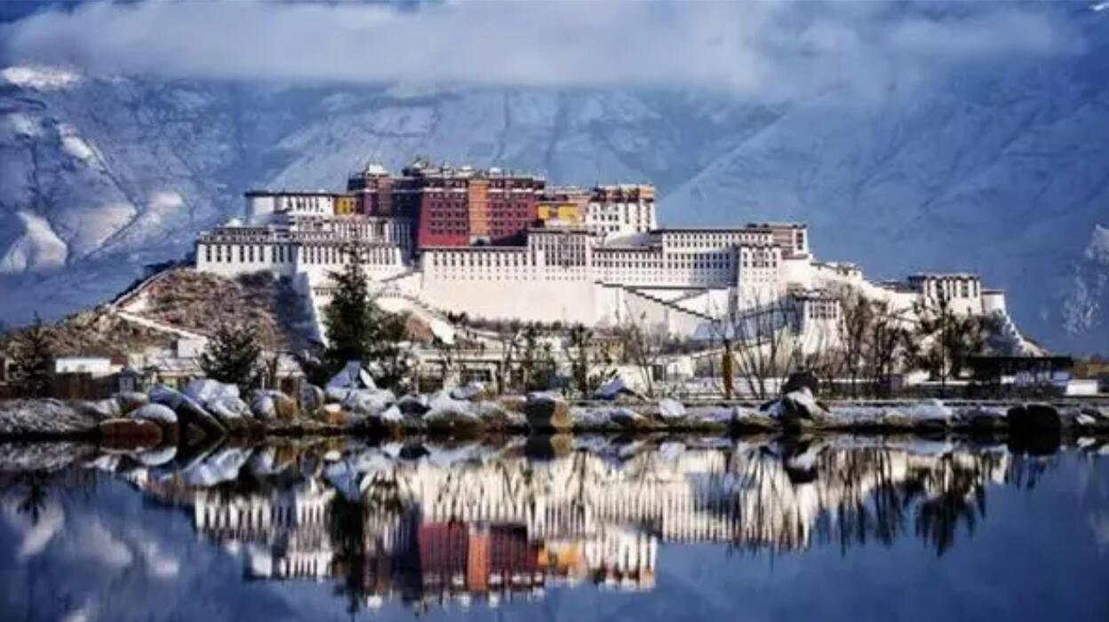 视线回移,3700米的高原边上,多了一处雄伟的大型建筑——布达拉宫!